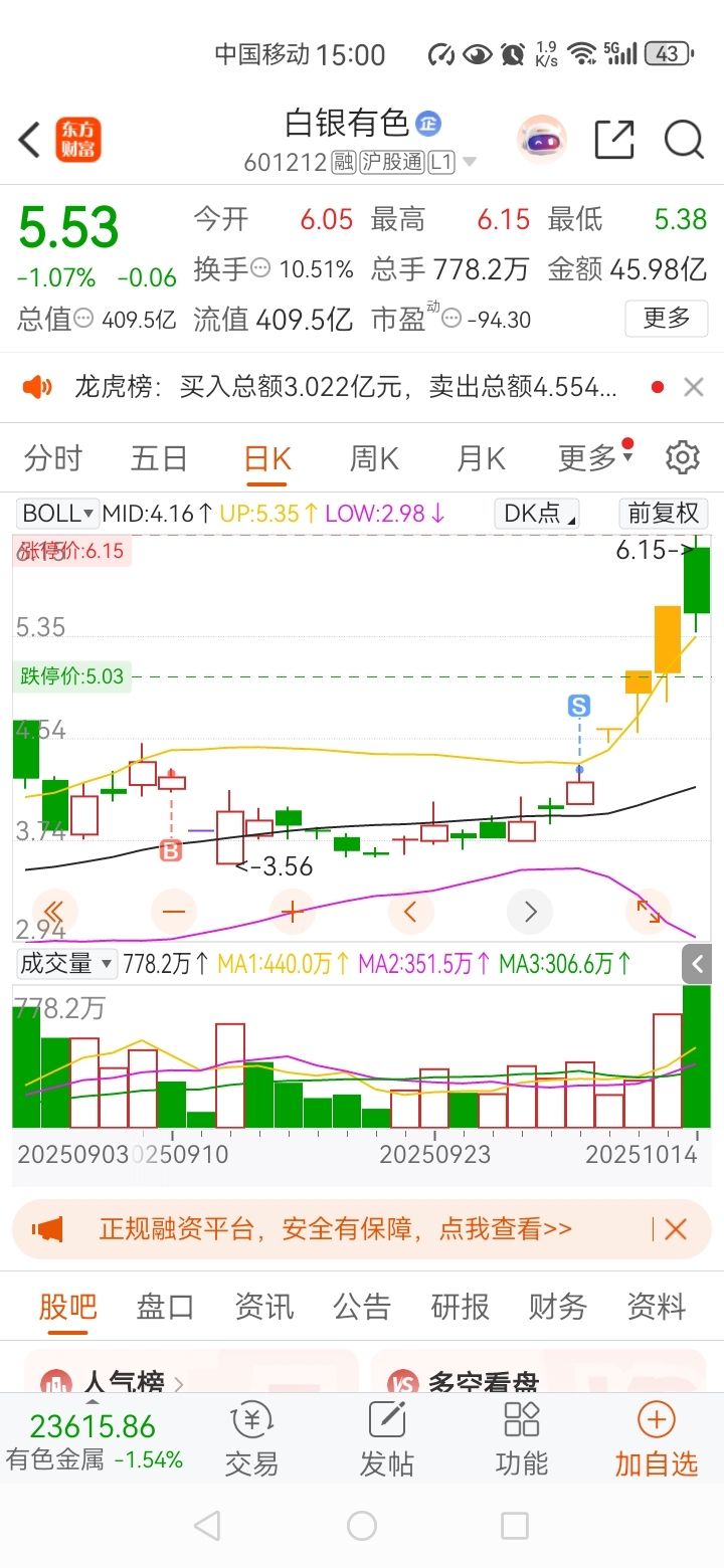 $白银有色(SH601212)$ 买后出公告吃跌停,卖后四个涨停