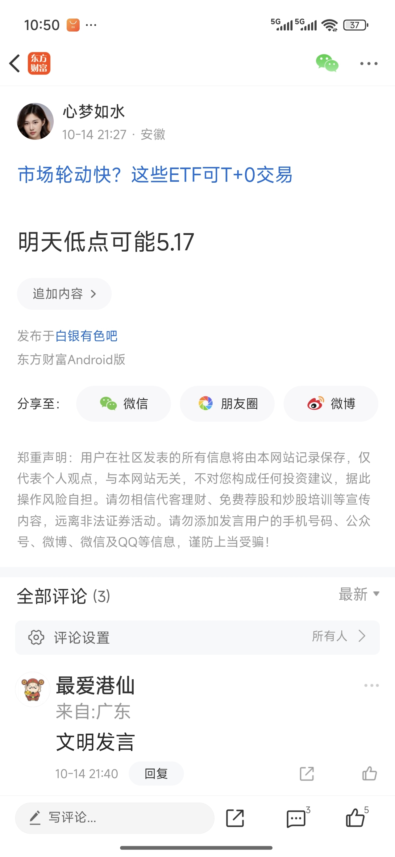 温馨提示: 1.根据《证券法》规定,禁止编造、传播虚假信息或者误导性信息,扰乱证券市场;2.用户在本社区发表的所有资料、言论等仅代表个人观点,与本网站立场无关,不对您构成任何投资建议。用户应基于自己的独立判断,自行决定证券投资并承担相应风险。《东方财富社区管理规定》