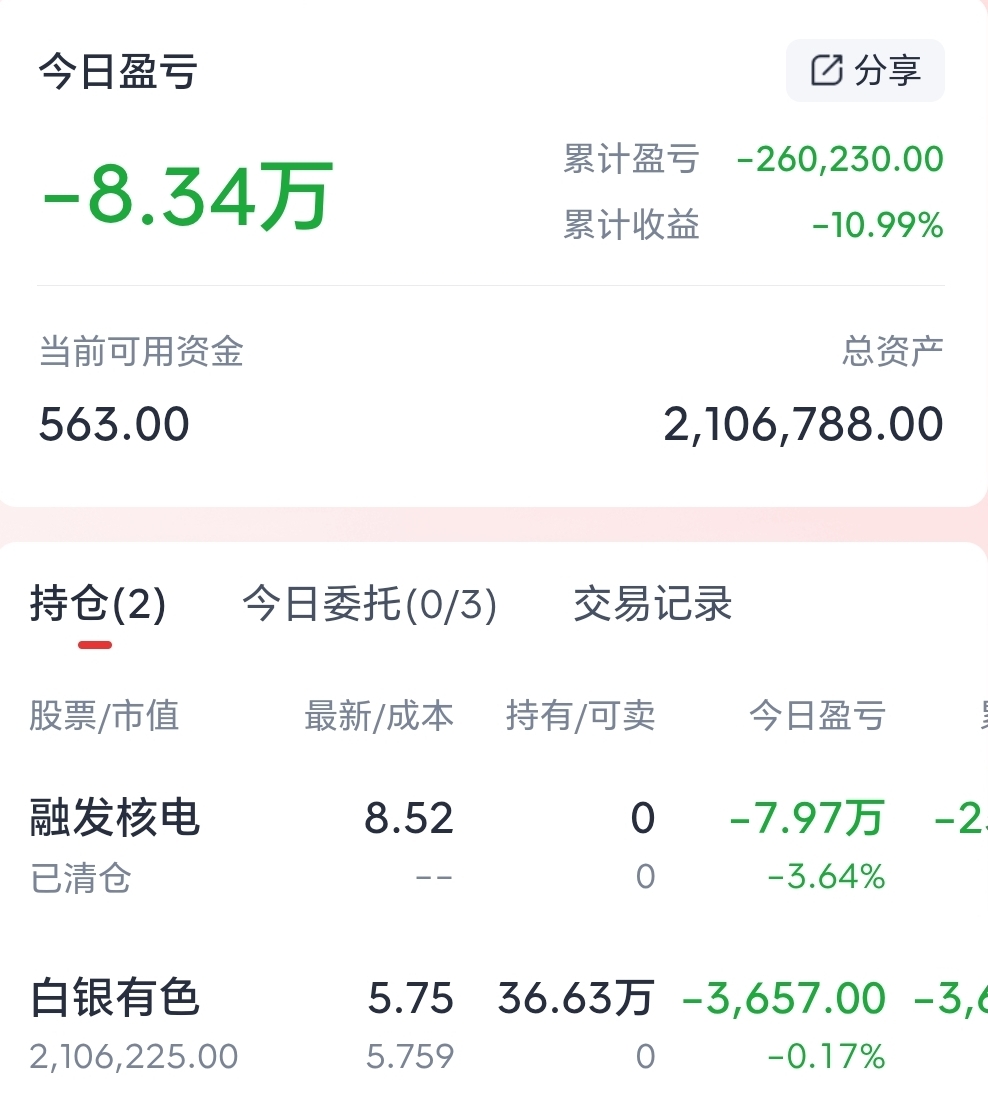 系统内的亏损是交易的一部分,清仓,重仓白银有色