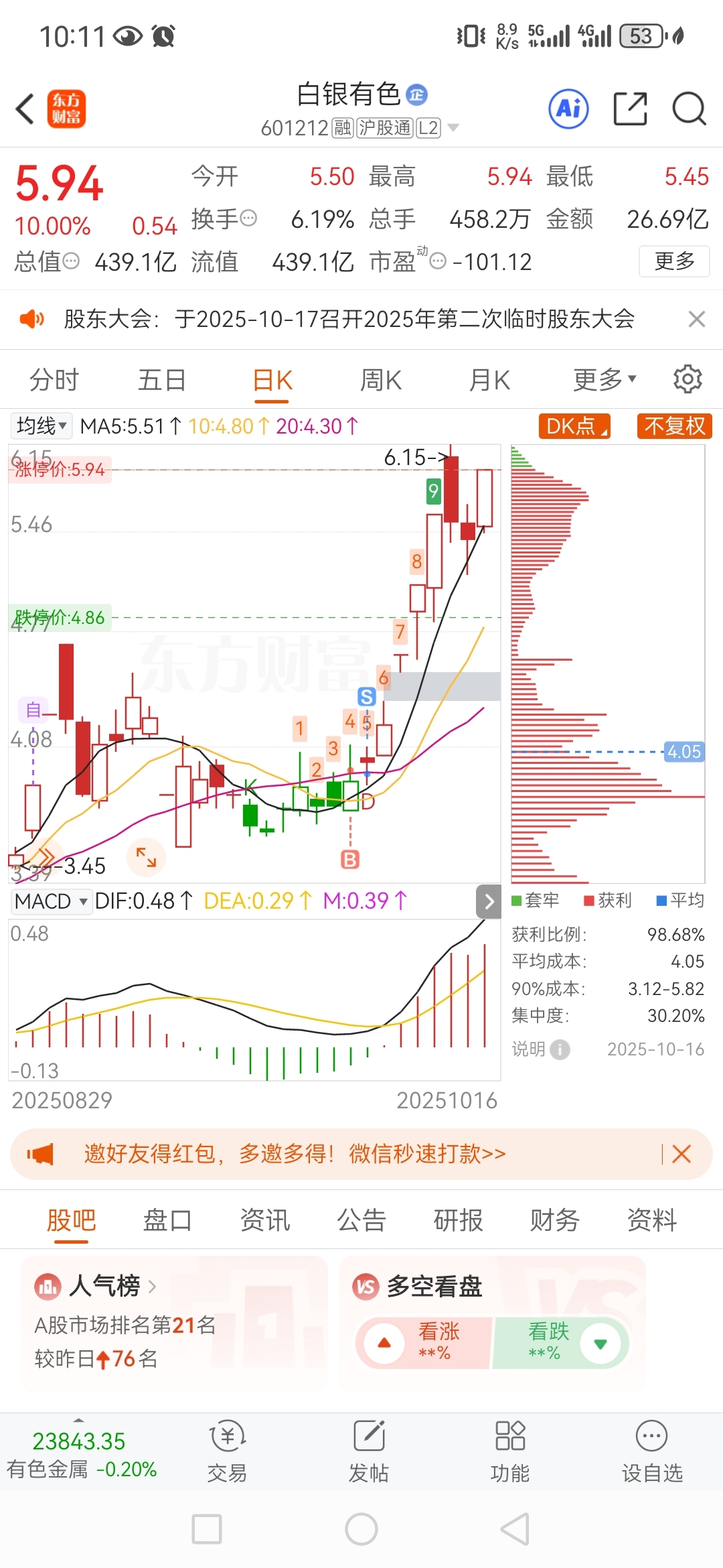 $白银有色(SH601212)$ 谁给我卖了