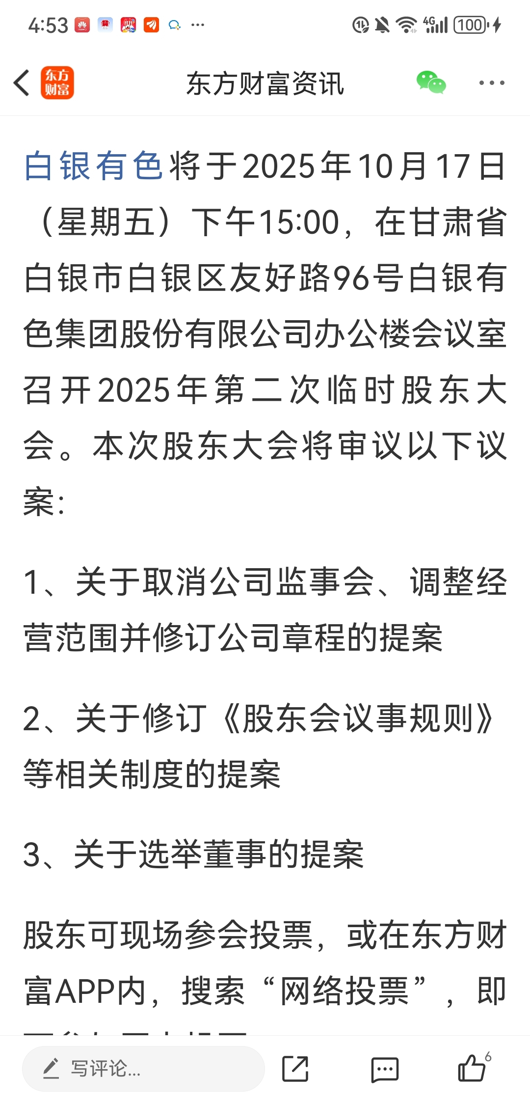 $白银有色(SH601212)$ 这是什么情况,取消监事会,调整经营范围,选举公司董事,这是要干什么