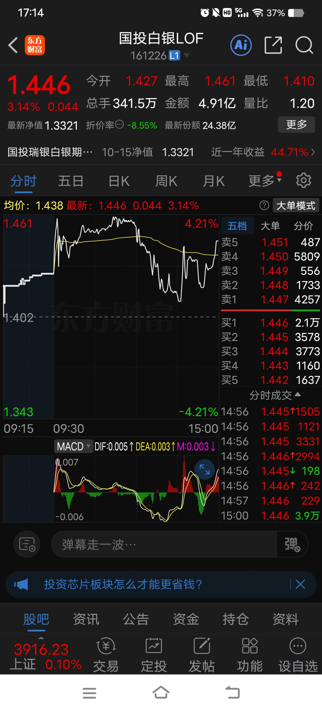 黄金白银双龙头,拿着好了。同时关注白银走势:国投白银lof。完全跟着走