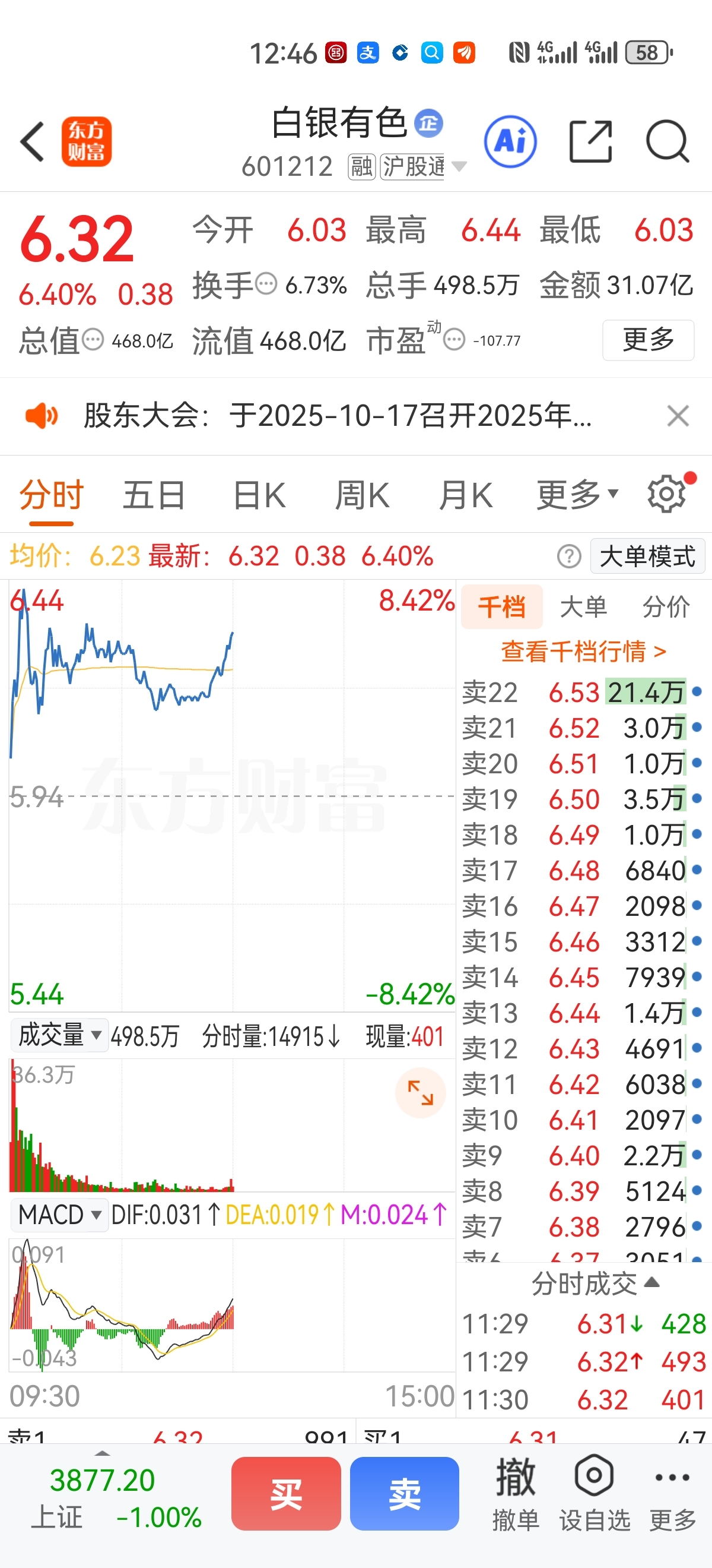 $白银有色(SH601212)$ 上面货不多啊