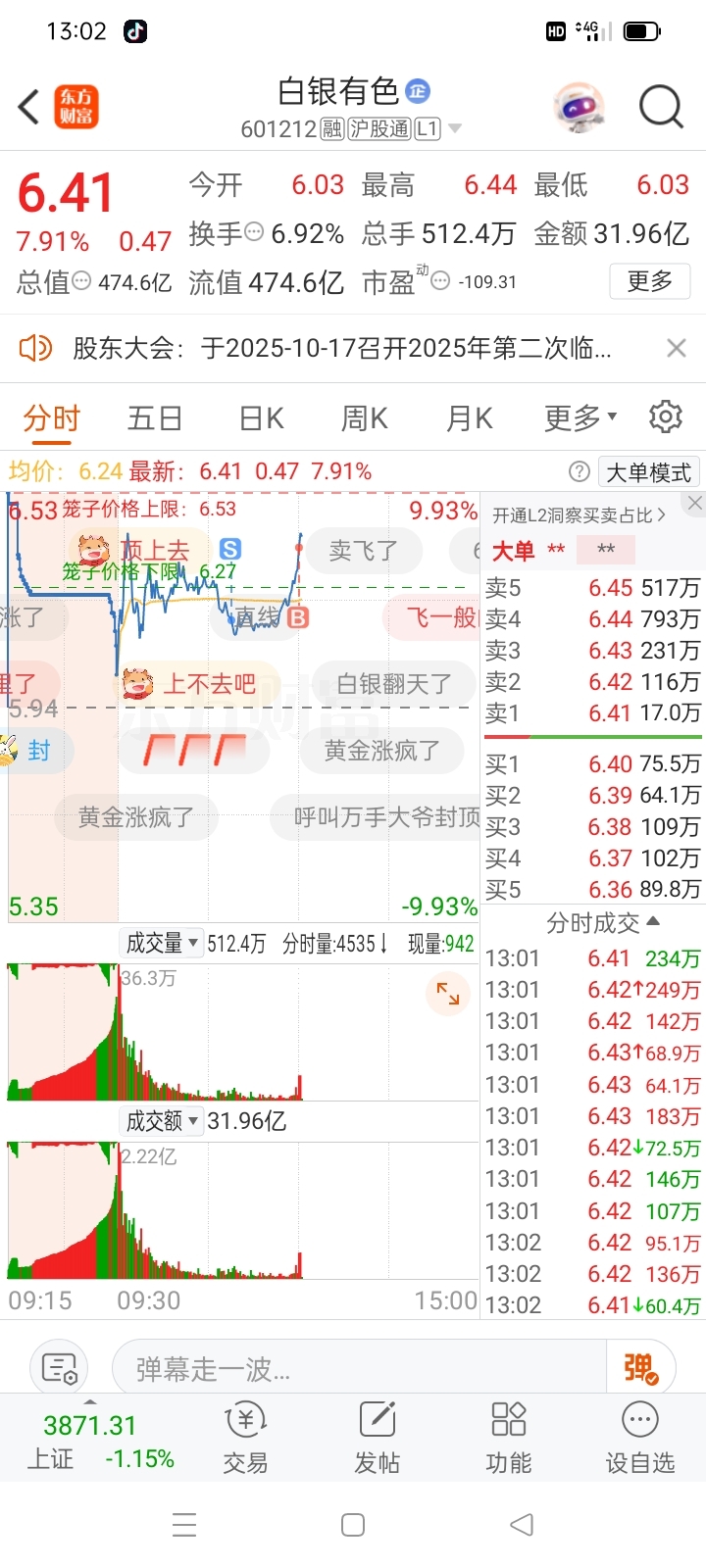 $白银有色(SH601212)$ 一面两吃凉了呀