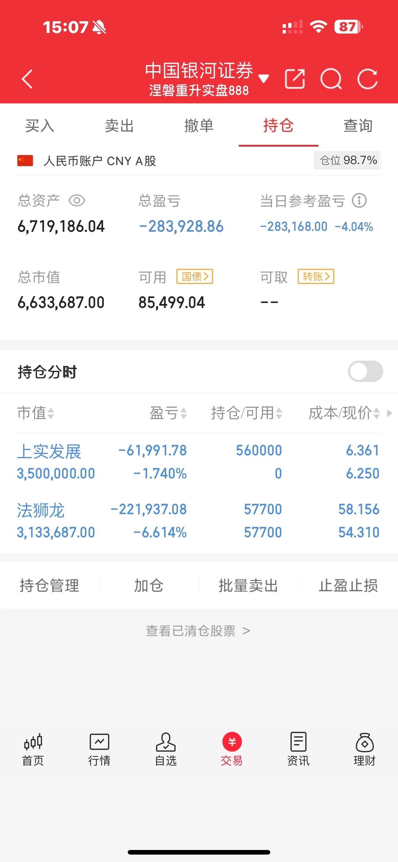 今天新开仓了上实发展,前面封板封得好好的可是这大盘跌得也太变态了,就像个无底洞一样深不见底啊,一天跌了两个点一直在阴跌一点抵抗都没有,希望下周可以修复吧,按照以往的情况上实可能要深水低开了,如果大盘强也许也会有反包。