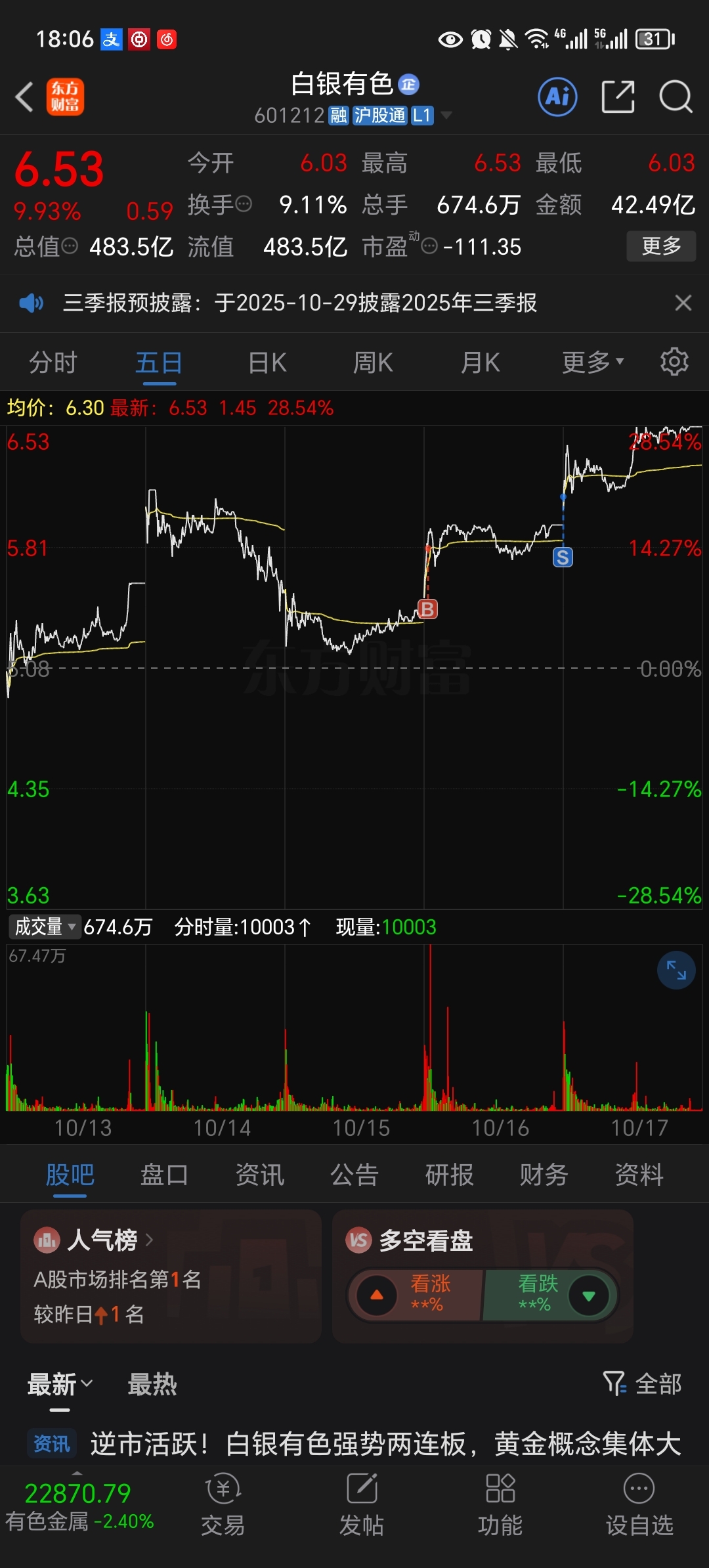 $白银有色(SH601212)$ 好好好 卖了就涨停,格局的时候就奔跌停