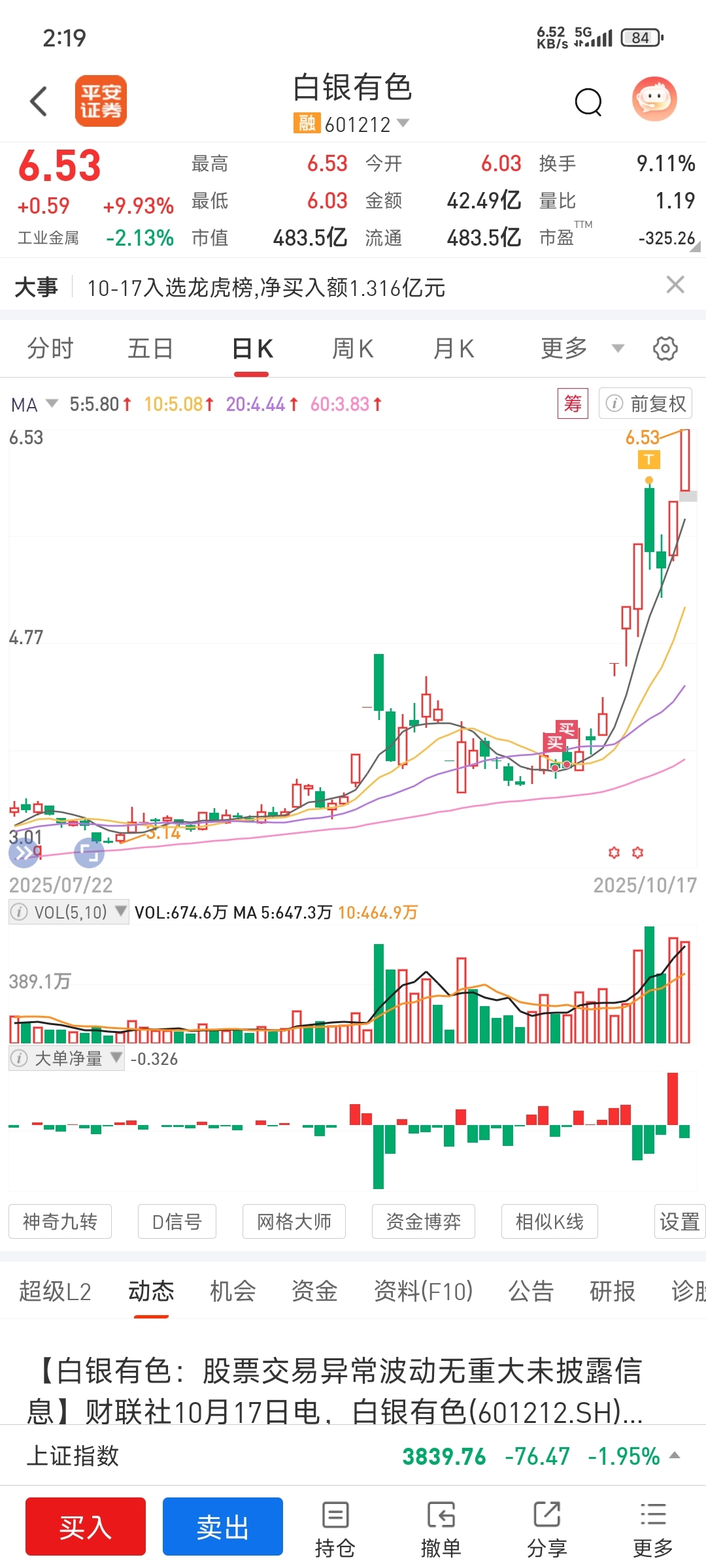 $白银有色(SH601212)$ 留了1000股,留下的兄弟发财