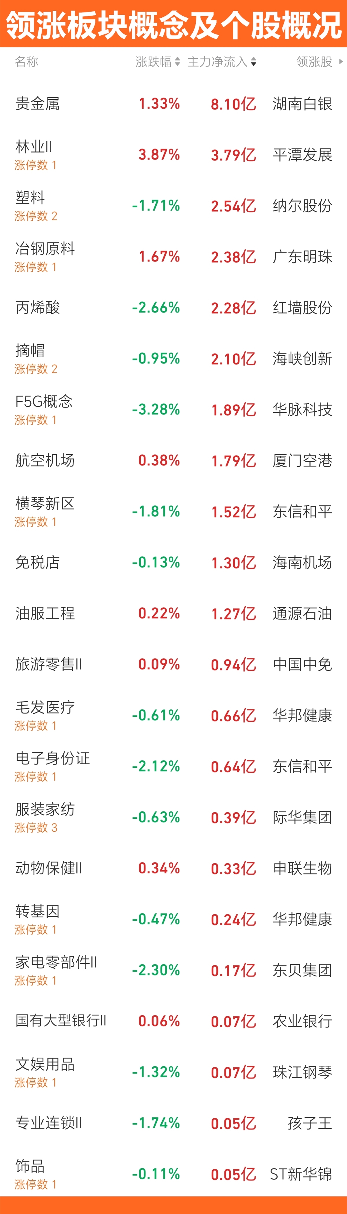 图二资金流入的板块概念和领涨股