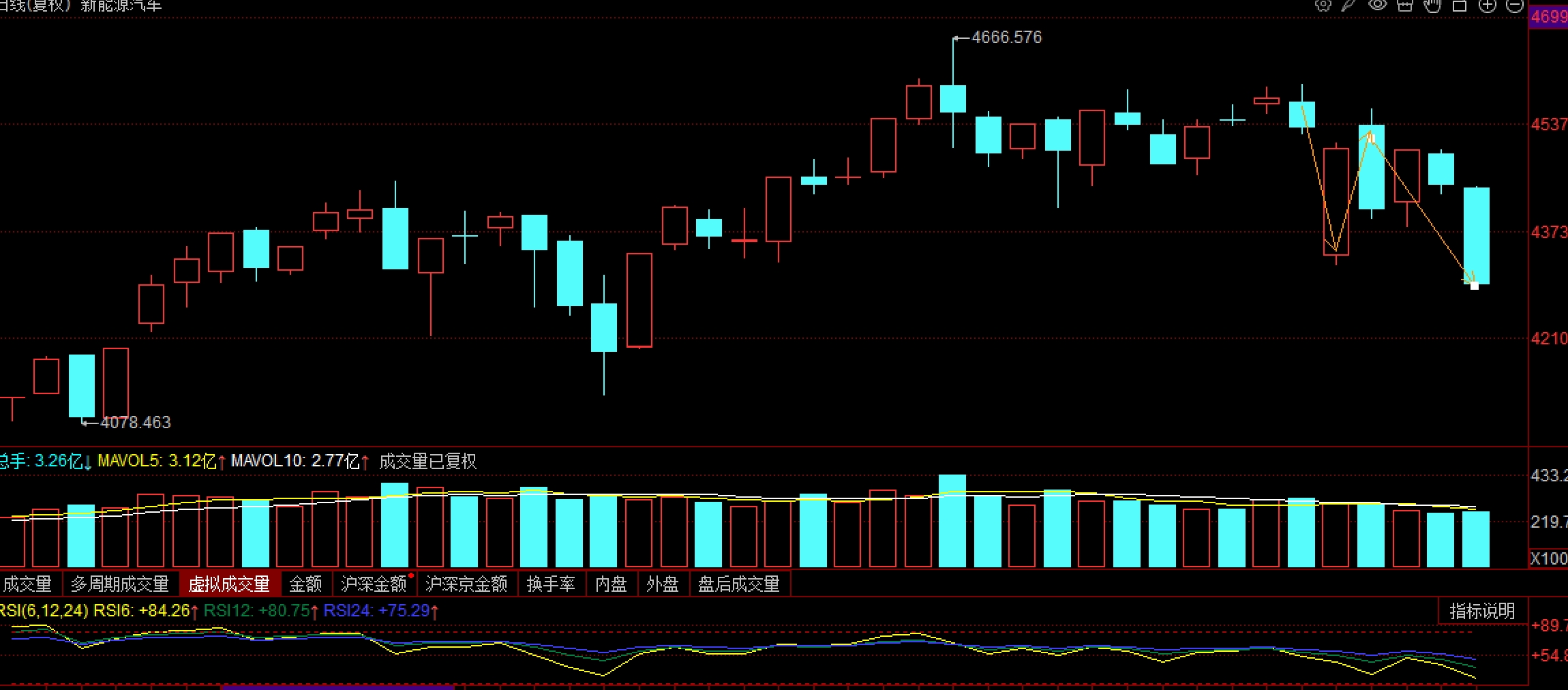 上海电气,我在10号大高开减仓之后都没动了,坚信后面一定还有行情的。现在大杀跌,短线走弱了,我是拿波段的平时不看盘无所谓,各位听信我的股友们应该亏惨了,再次抱歉了各位,判断错误!日k结构上已经下三完整了,就看什么时候企稳。所以现在也给不出什么建议来,继续拿或者割肉都不合适。板块收出新低应该也是收尾阶段了,继续等等吧。
