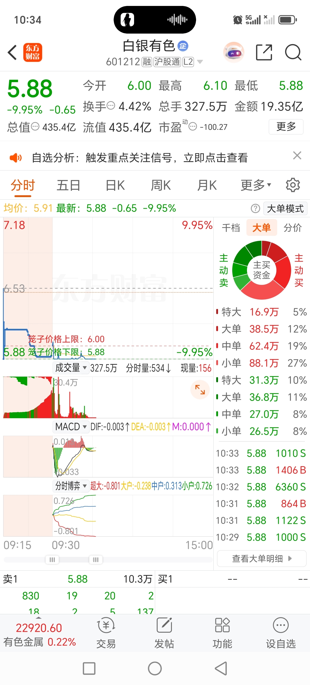 $白银有色(SH601212)$ 都红多绿少了还跌停!