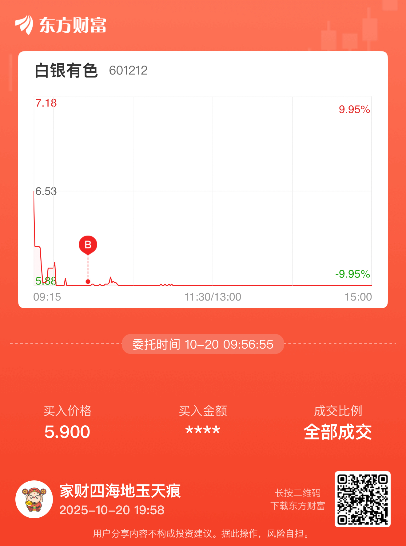 温馨提示: 1.根据《证券法》规定,禁止编造、传播虚假信息或者误导性信息,扰乱证券市场;2.用户在本社区发表的所有资料、言论等仅代表个人观点,与本网站立场无关,不对您构成任何投资建议。用户应基于自己的独立判断,自行决定证券投资并承担相应风险。《东方财富社区管理规定》