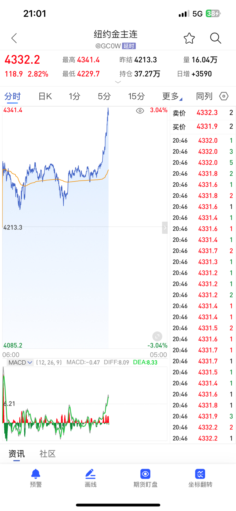 $白银有色(SH601212)$ 黄金白银大涨呀,明天不要高开就好
