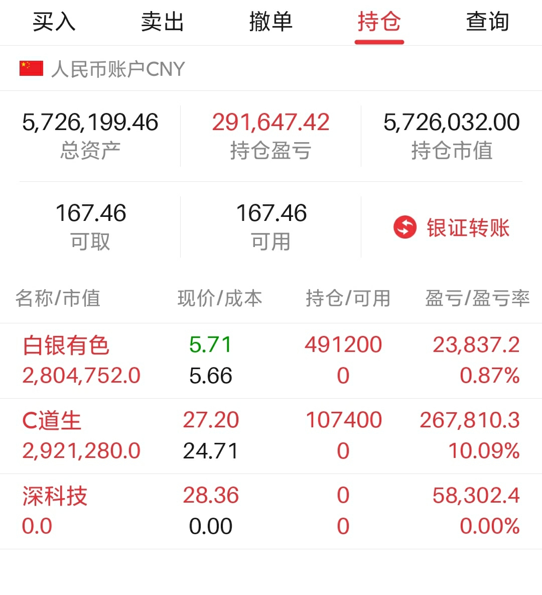 $白银有色(SH601212)$ $C道生(SH601026)$ $深科技(SZ000021)$ 既然白银有色今天没有低开,说明主力还没跑!后市还会反复新高!所以今天就果断介入了。大家看看我的交割单…进来讨论一下后市操作建议!