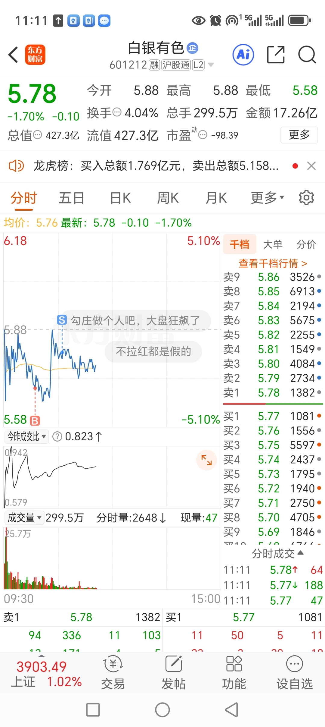 $白银有色(SH601212)$ 早上没跑伤心了,只能T一下了