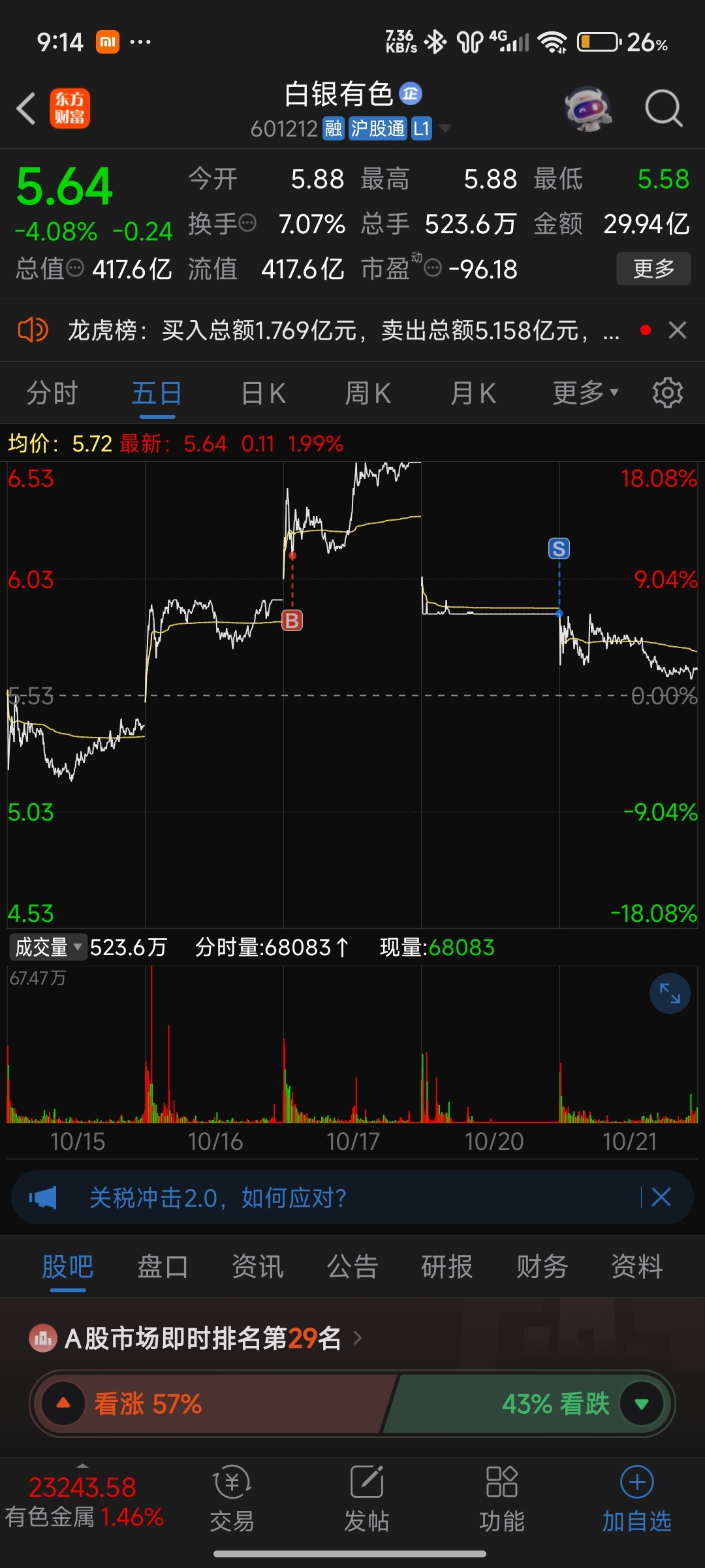 $白银有色(SH601212)$ 毛都没赚到!血亏5个点害!