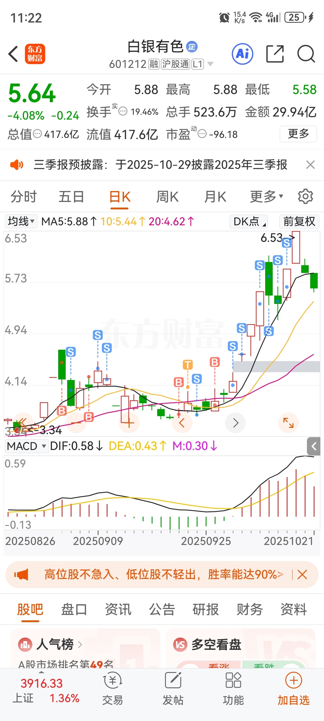 $白银有色(SH601212)$ 明天要是跌停,我回来玩一玩!