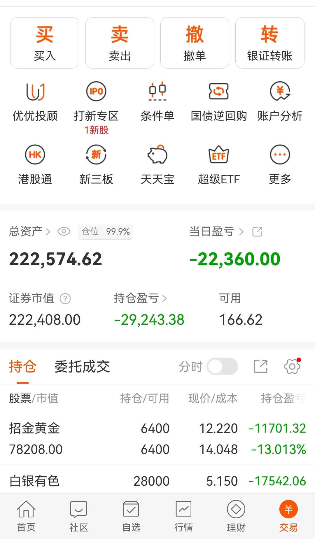 $白银有色(SH601212)$ 的,昨天进来就割我一万多。