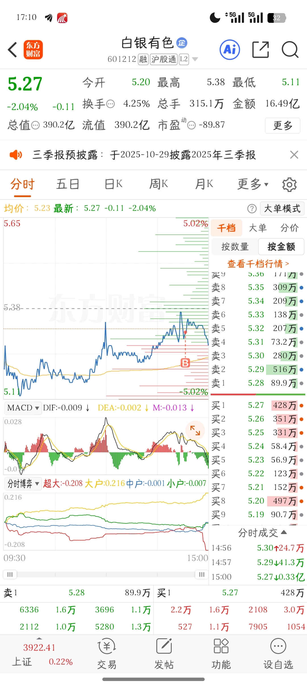 10.23持仓卖出24.93彩虹集团买入5.32白银有色只能说子弹不够手续都够折