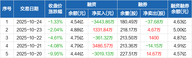 白银有色:融资净偿还3443.86万元,融资余额4.54亿元(10-24)