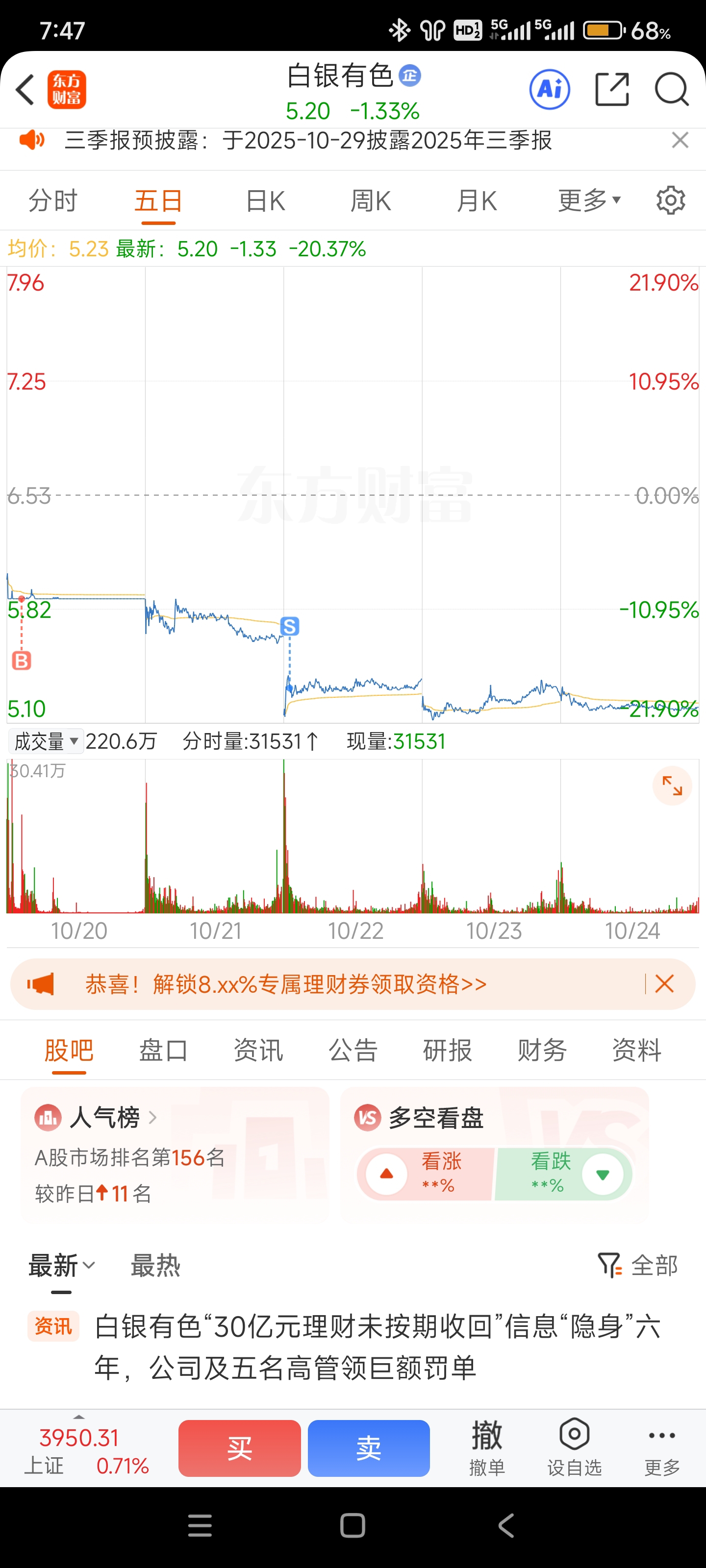 $白银有色(SH601212)$ 还好亏10个点果断离场