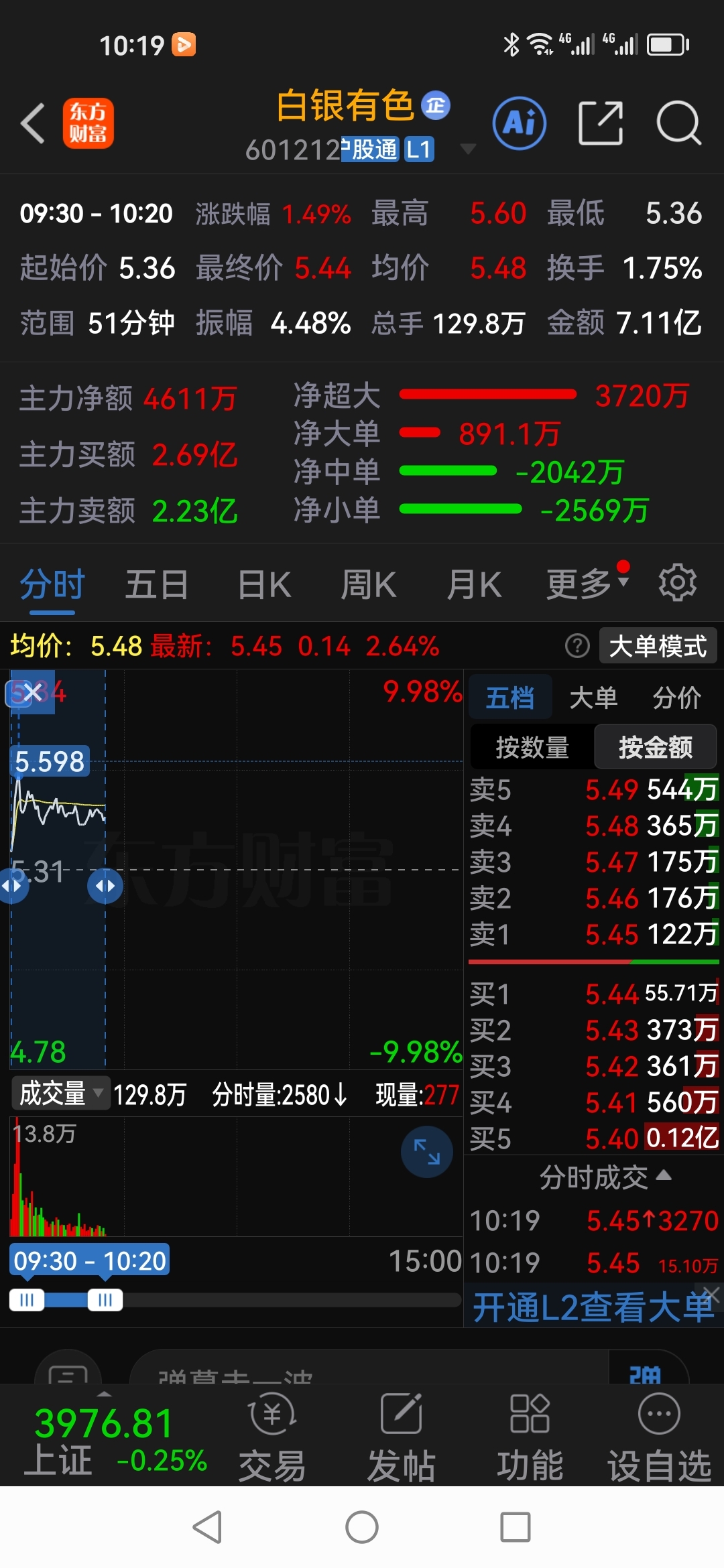 $白银有色(SH601212)$ 今天跑的都是小单。自己看,