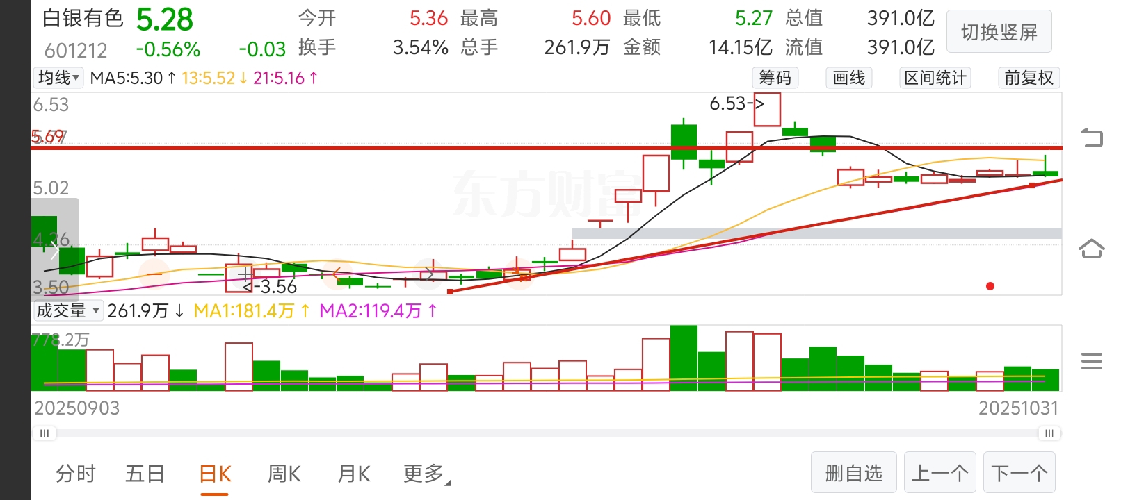 $白银有色(SH601212)$ 美联储降息利好,业绩上升明显,历史大底,有色龙头之一。即将开启一轮行情。