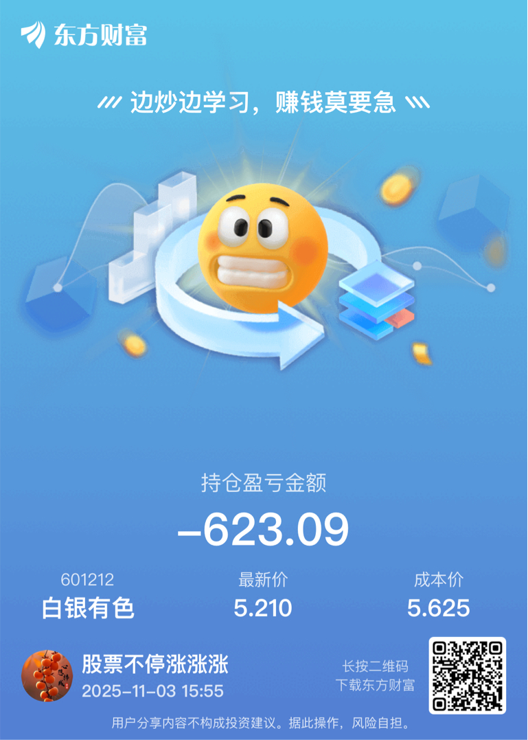$白银有色(SH601212)$ 买了那么久还亏623元,真是个韭菜,兄弟们求安慰,要不要换成其他板块挽回损失呢