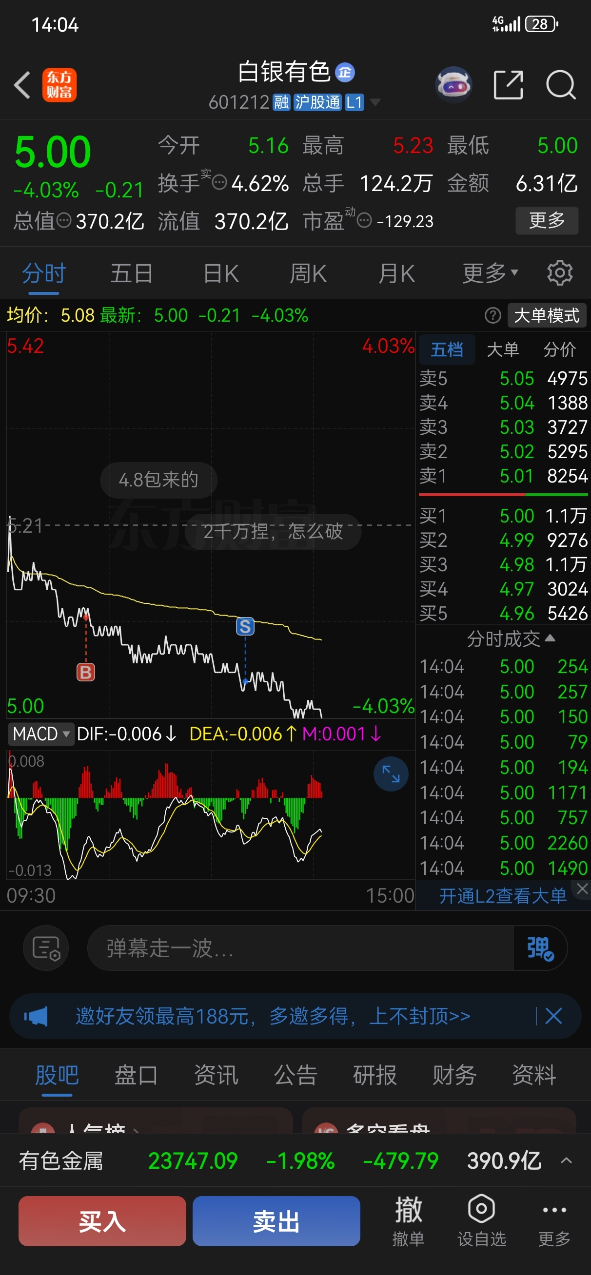 $白银有色(SH601212)$ 不割不行了,被迫反t