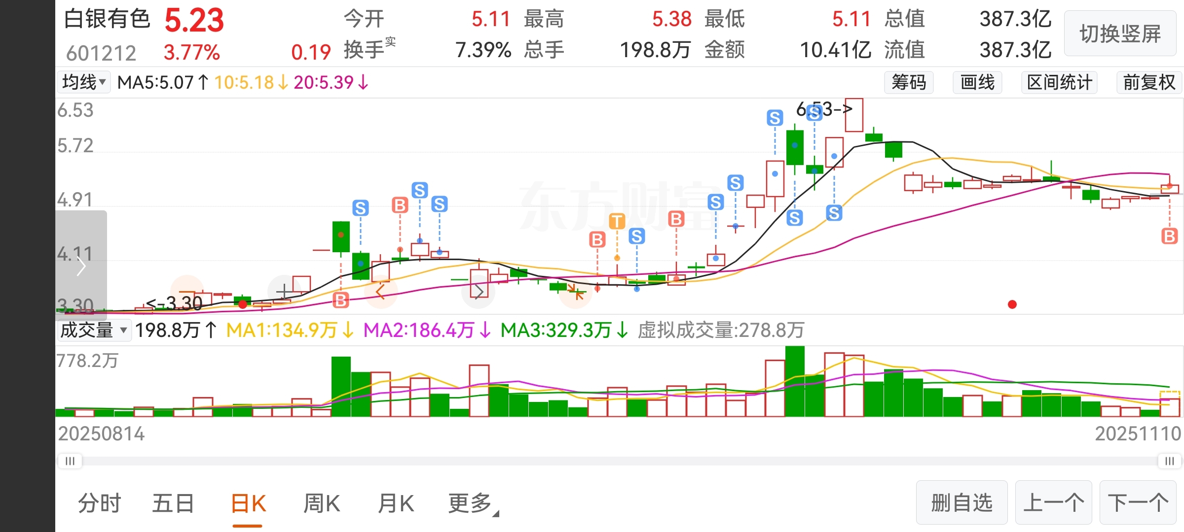 $白银有色(SH601212)$ 我回来看一看,看有没机会