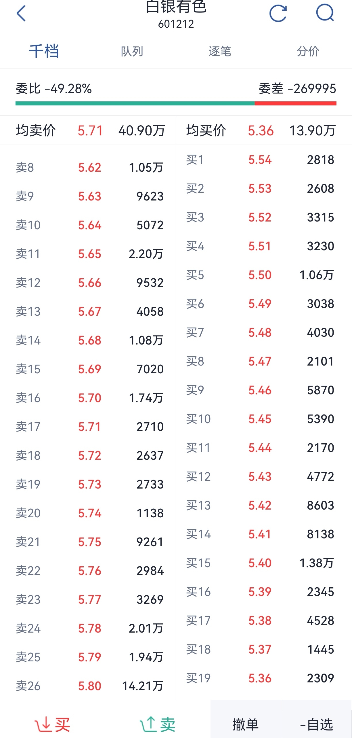 $白银有色(SH601212)$ 大单压盘上不去的,如果不撤单这几亿谁愿意吃呢?
