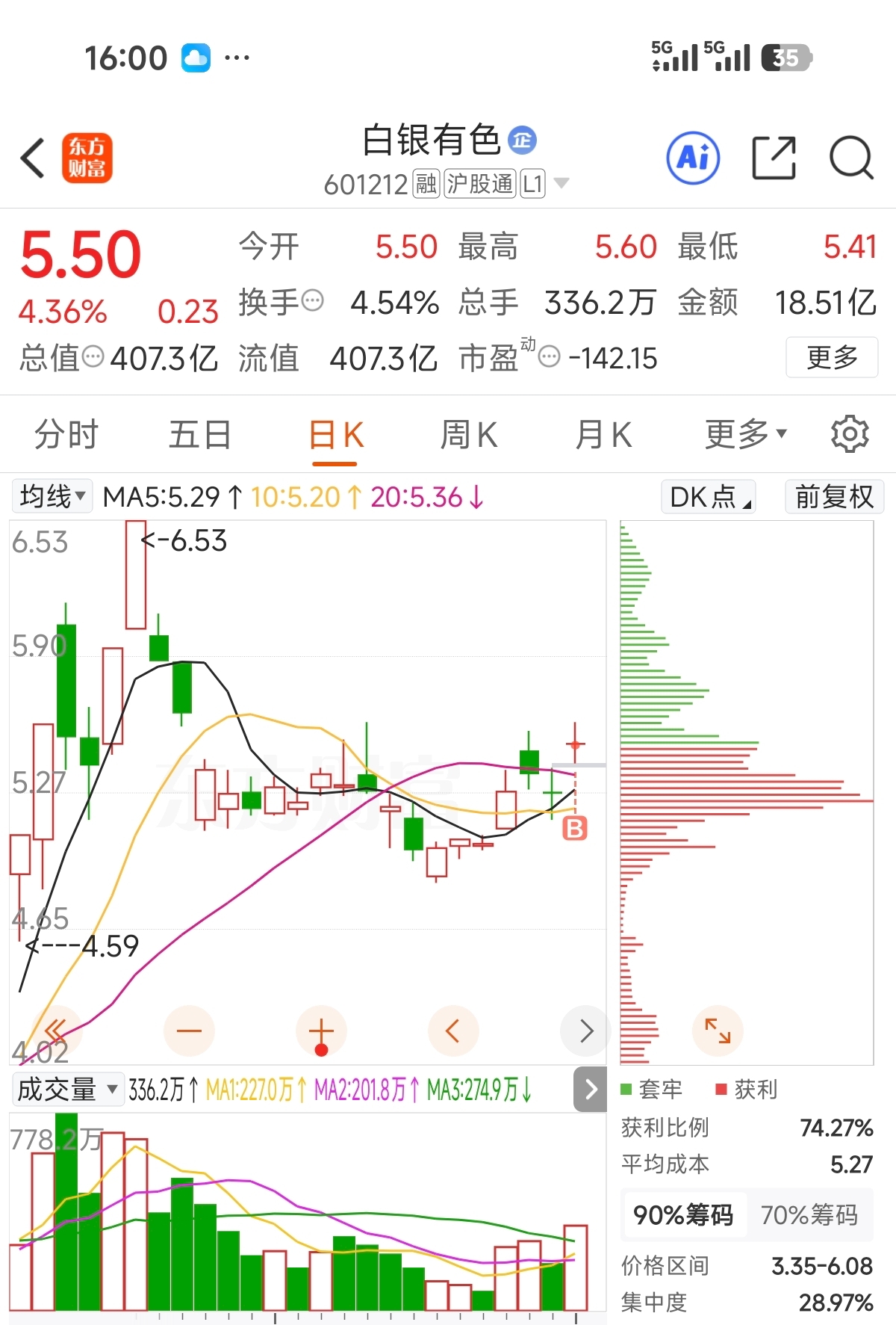 $白银有色(SH601212)$ 买入理由:明天金叉,昨天低位出十字星,今天有色金属起涨。