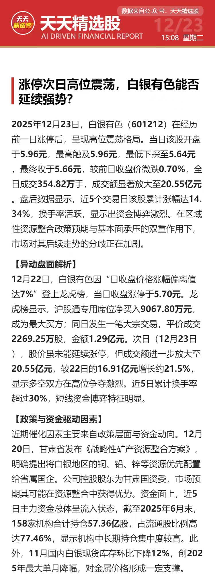 涨停次日高位震荡,白银有色能否延续强势?