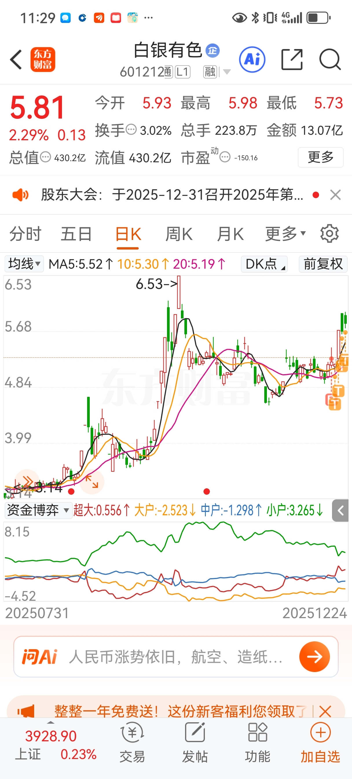 $白银有色(SH601212)$ 看见这两根大阴柱,顿时觉得今天5.97进来亏大发了。有没有高手给看看后续如何?
