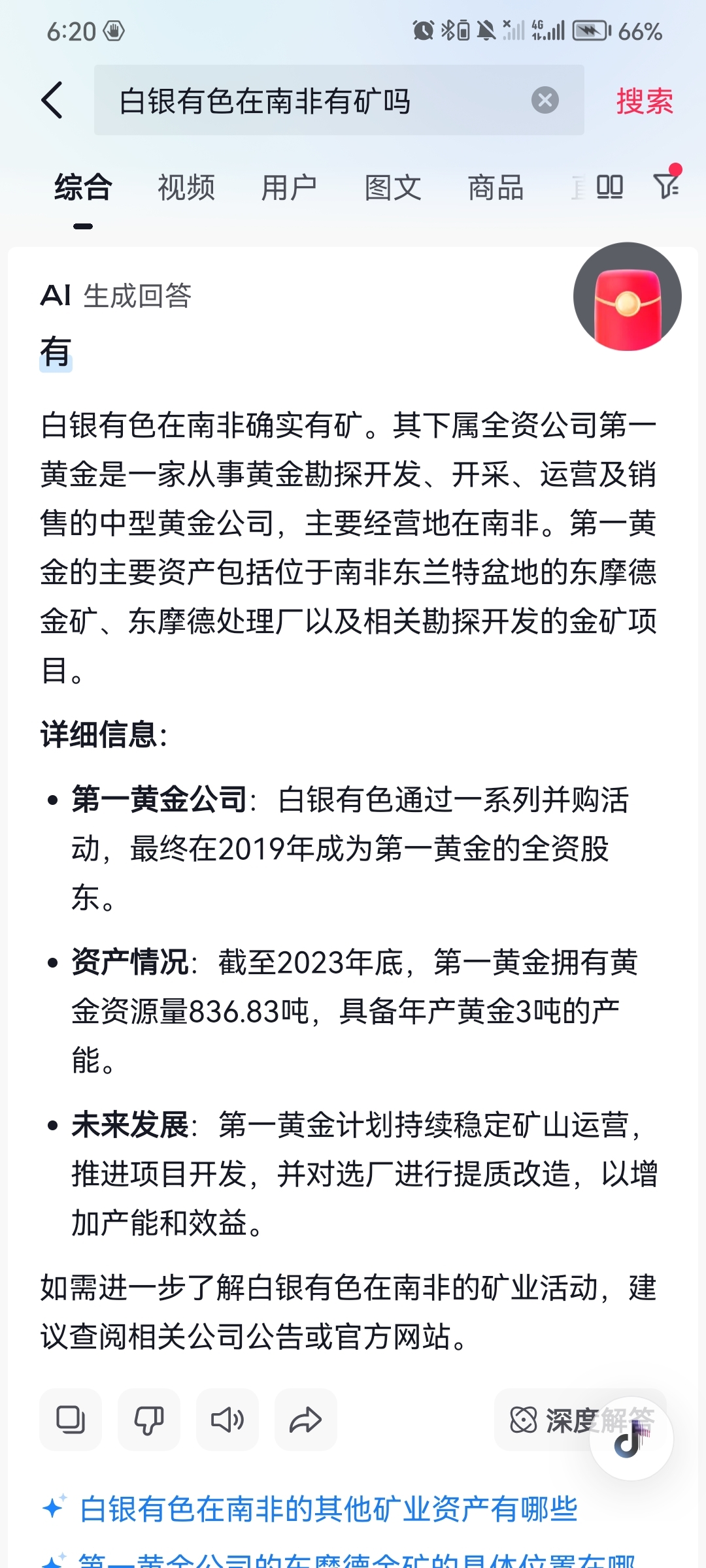 $白银有色(SH601212)$ 还真有南非金矿