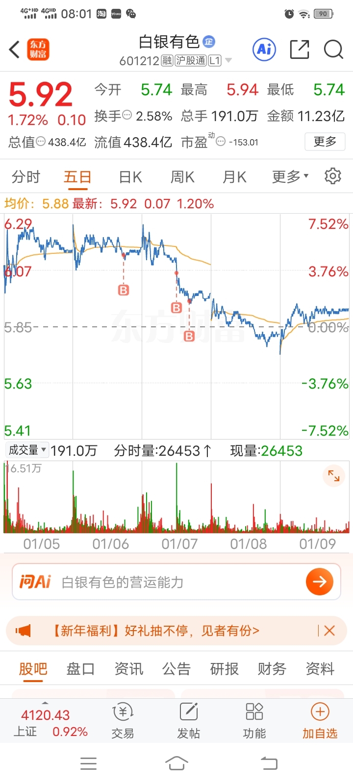 买了一只涨停板开板的票,今天才知道原来这只股票不是白银是有色铜,股票代码601212股票名称是甘肃省白银市的有色公司,起初我以为是白银,12月29日那天白银大涨,这只股票涨停板开板抢了一层仓,第二天直接跌停拉起来没想到主力如此洗盘,两次补仓都是主力高位出货,成了接盘侠,今天早上复盘才知道,这哪是真金白银,就是甘肃省白银市的铜,我好生气啊,原来如此,不怪这只股票的名字怪我自己的水平,亏钱是自己追高头脑发热,想当然以为是白银,典型的股盲,哈哈好笑吧