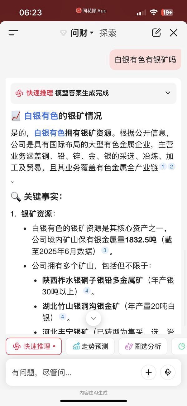 $白银有色(SH601212)$ 1800 顿银矿自有矿山,还有铜,铅,金矿山,一堆在那瞎bb,