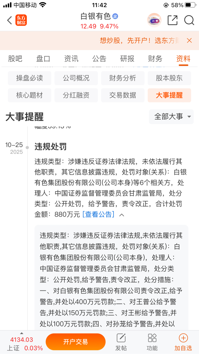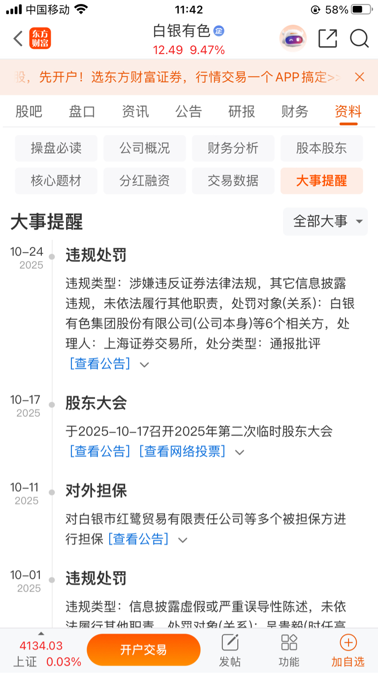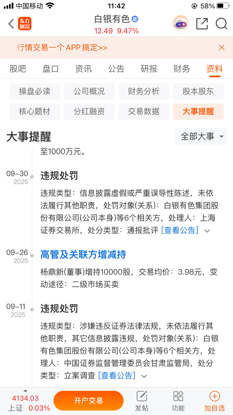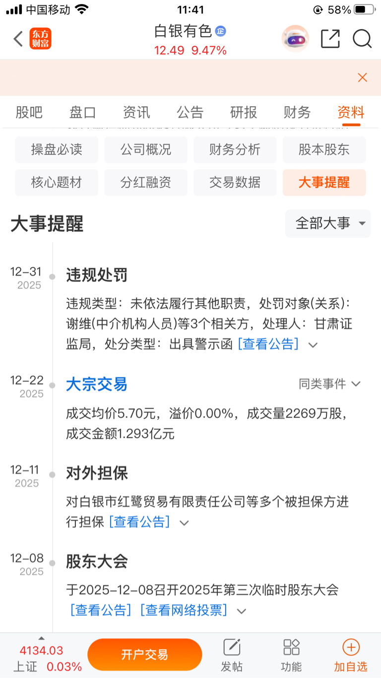 $白银有色(SH601212)$ 重磅,重磅,重磅,随时停牌风险提示,高风险违规预备股,接盘的请注意,将面临停牌崩盘。