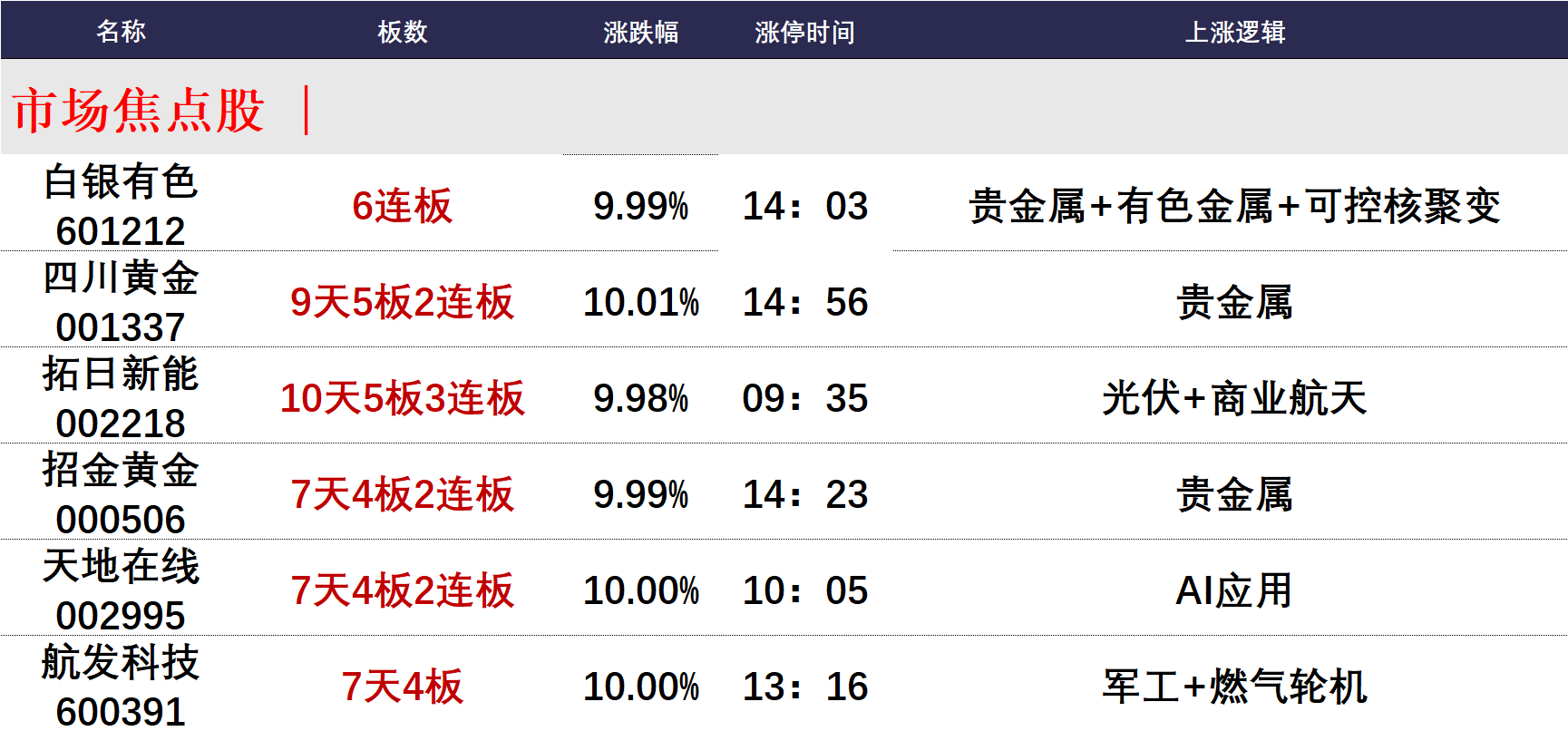 今日涨停个股共53只