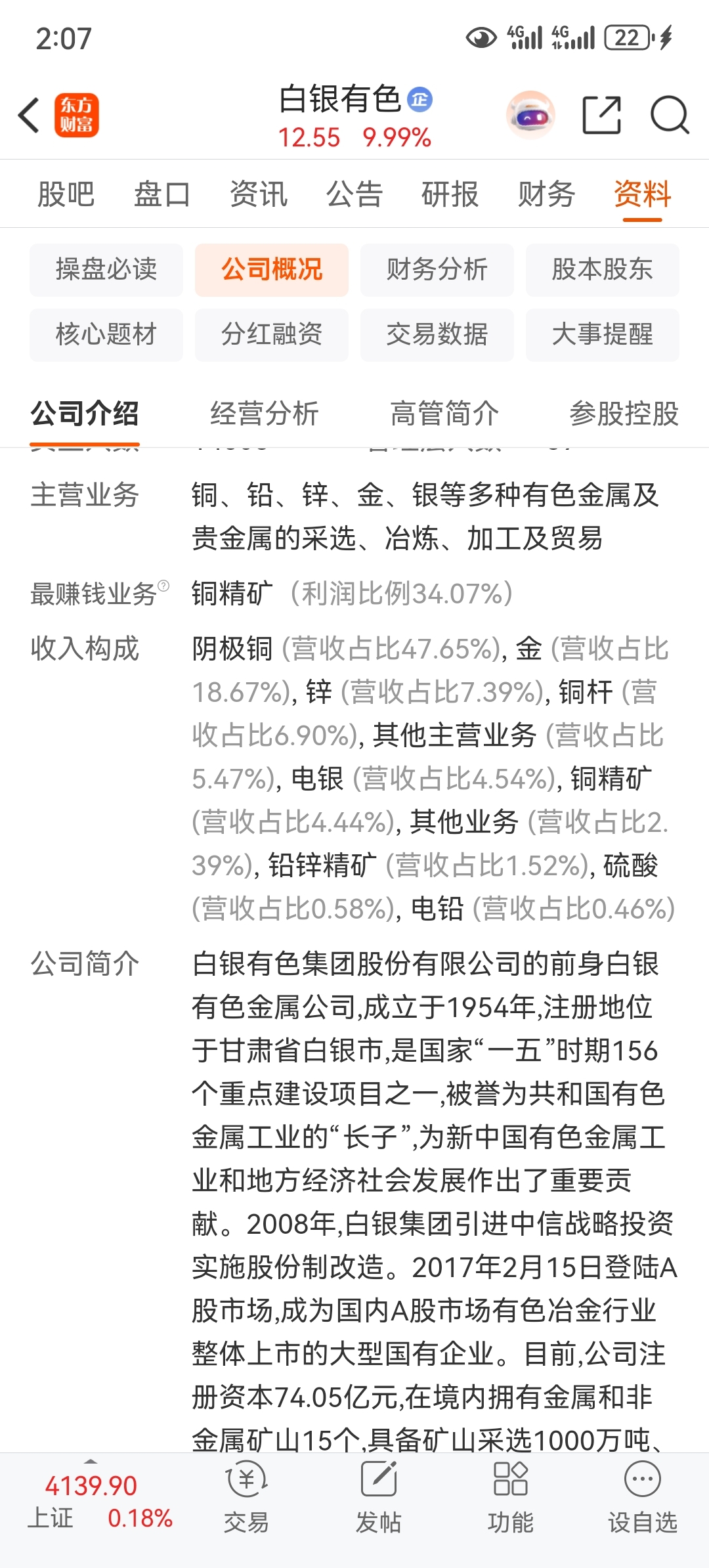 $白银有色(SH601212)$ 这个公司主业是铜、有色金属,公司名字叫白银有色金属集团有限公司,你们怎么总是和黄金白银挂钩呢?