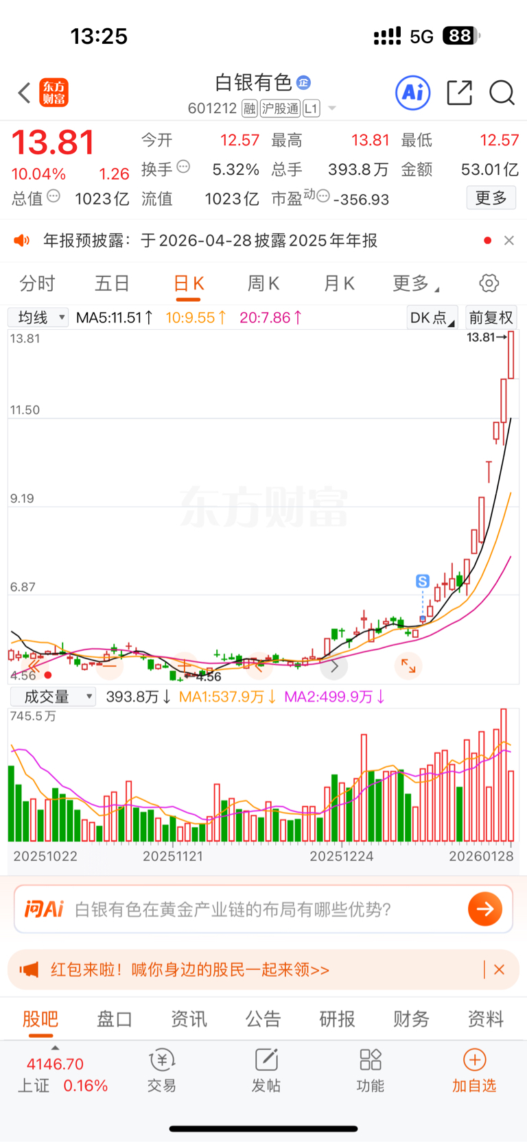 $白银有色(SH601212)$ 拿了两年,不割就不涨是吧