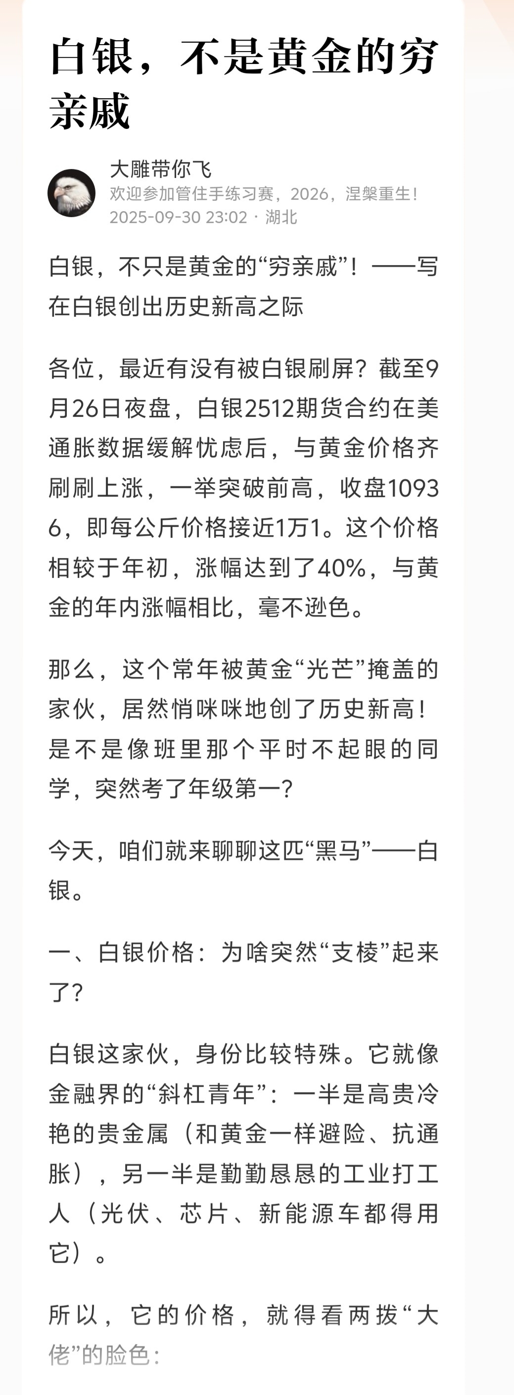$白银有色(SH601212)$ $湖南白银(SZ002716)$ $铜陵有色(SZ000630)$ 逻辑我给你,能不能赚到钱就看你自己了!大雕带你飞#收盘点评# #黄金突破5200美元!白银要到150美元?#