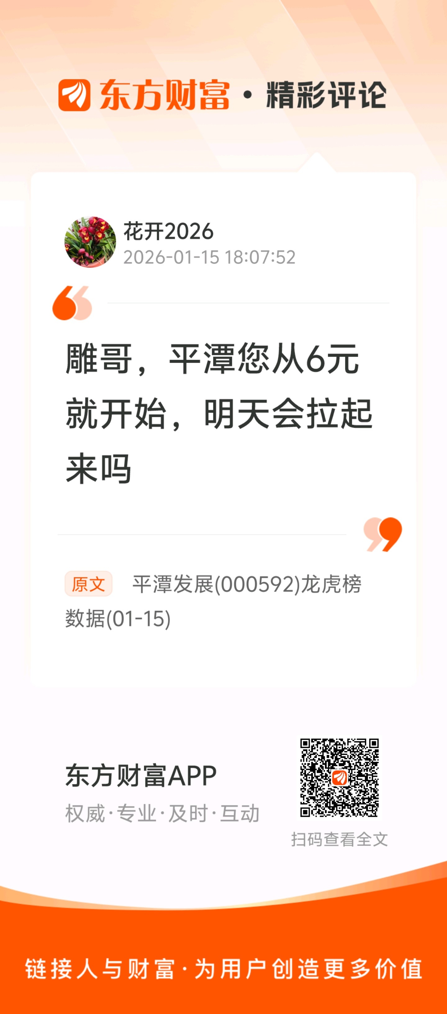 温馨提示: 1.根据《证券法》规定,禁止编造、传播虚假信息或者误导性信息,扰乱证券市场;2.用户在本社区发表的所有资料、言论等仅代表个人观点,与本网站立场无关,不对您构成任何投资建议。用户应基于自己的独立判断,自行决定证券投资并承担相应风险。《东方财富社区管理规定》