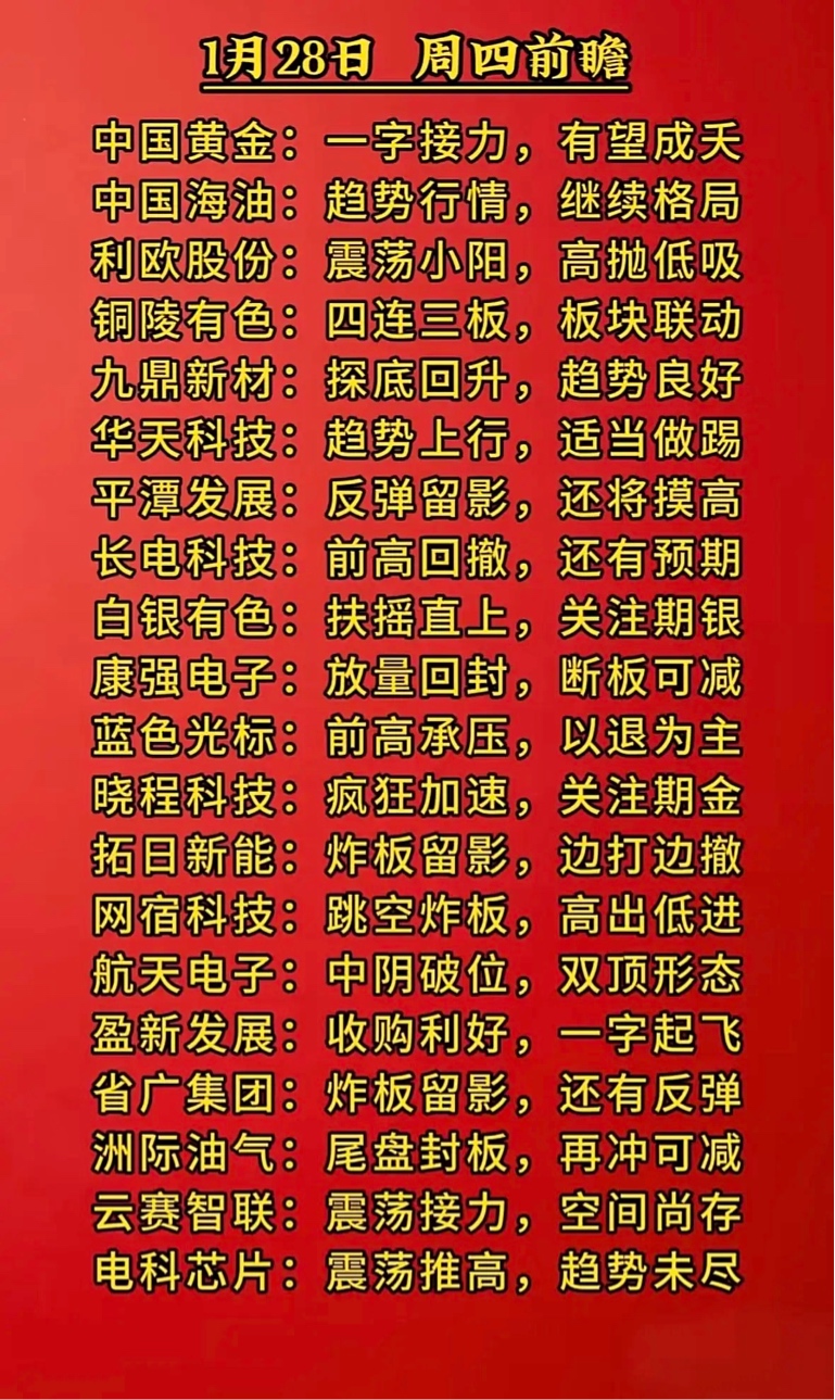 1月28日投资前瞻:黄金、海油、科技股等强势股分析