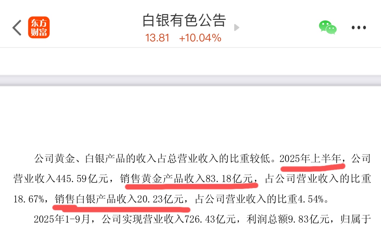 $白银有色(SH601212)$ 2025年上半年,黄金销售收入83亿,白银销售收入20亿,正宗的黄金白银概念股