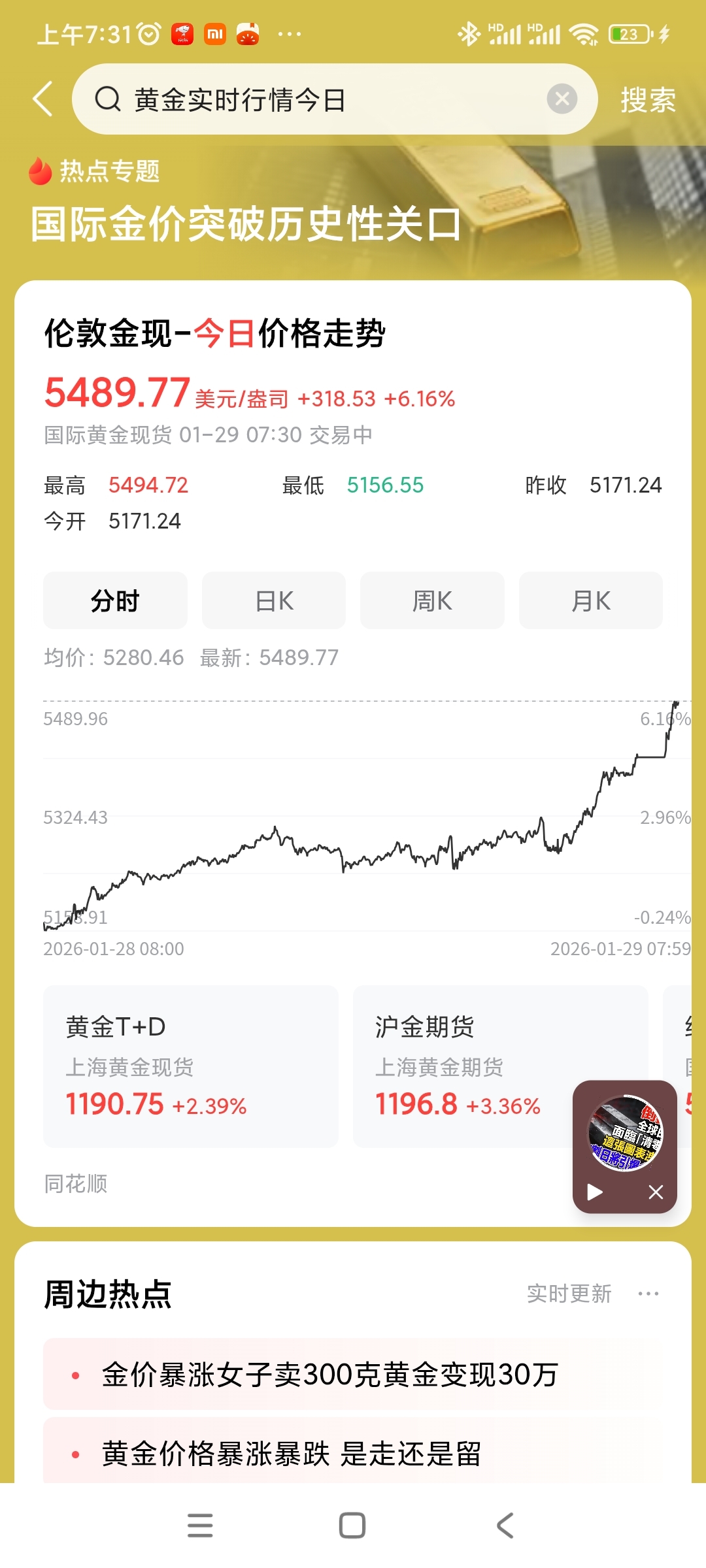 $白银有色(SH601212)$ 1-29日,伦敦金现价格上涨6.16%.强攻5489.77.