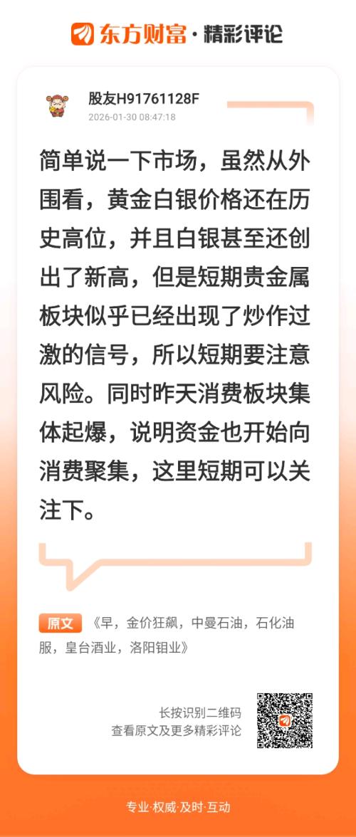 曼卡龙,因为昨天逢高K哥已经把仓位大幅降低了,所以这里会短期关注一下贵金属板块的持续性,如果持续性不佳,那么会择机逢高下课。公司是一家集珠宝首饰创意、销售、品牌管理为一体的珠宝首饰零售连锁企业,主营素金饰品与镶嵌饰品,聚焦年轻消费群体,属于首饰产业的重要零售品牌之一。