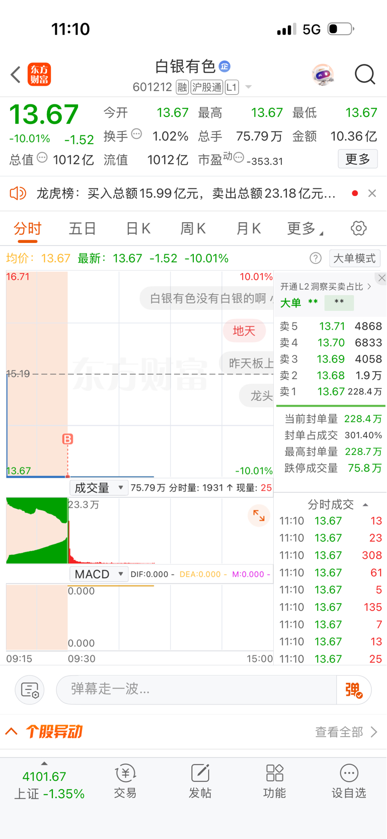 低位平仓进了紫金KY,竞价进了白银YS搏一把。下午紫金KY只要不跌停,就出掉,继续减仓位。白银YS看样子是够呛