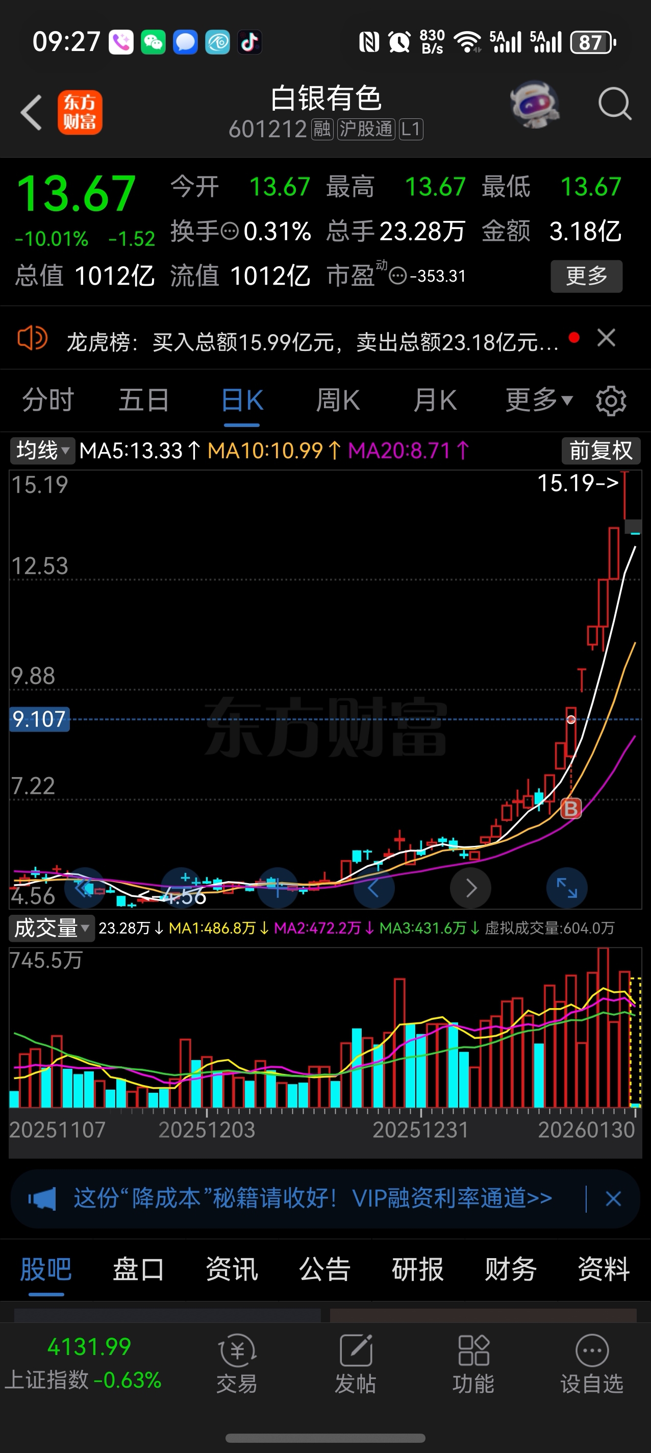 $白银有色(SH601212)$ 你们在叫什么呢,一个跌停而已。我纹丝不动。