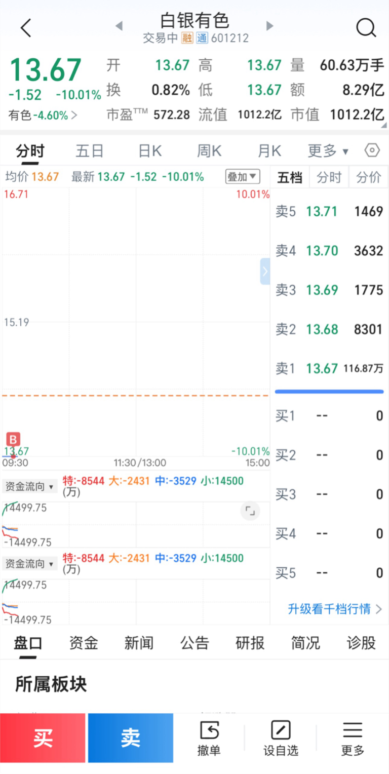 $白银有色(SH601212)$ 昨天涨停版买进去的,今天挨打想着卖掉吧,然后卖出操作成买入,今天卖出来的,感谢我吧