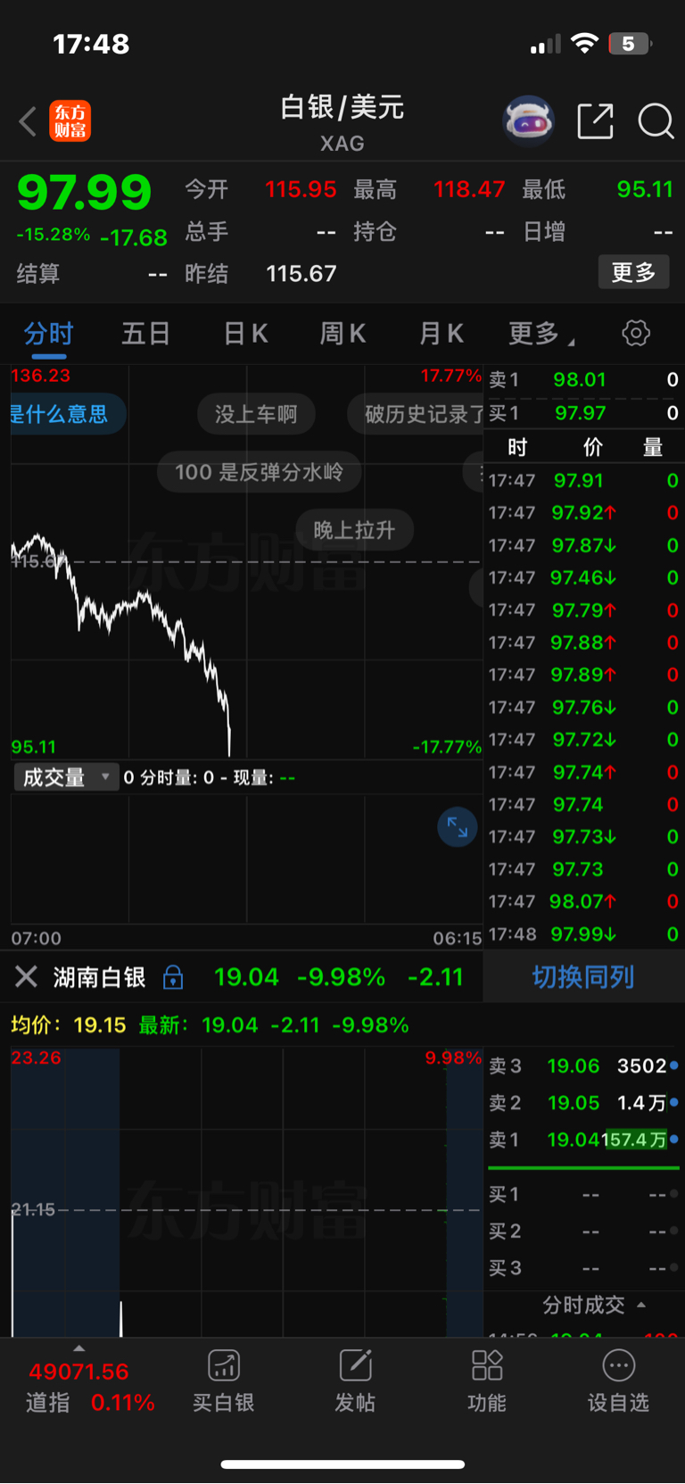 好家伙白银期货跌17个点.我这算逃顶了昨天两个黄金股票高开直接清仓止盈了今天买了